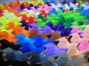 lake of toxic waste and contaminated water, the residue from oil sands mining operations; most of the flock died within minutes. The Duck Memorial Gallery consists of one thousand six hundred and six origami ducks folded from 5” squares of coloured paper – five being the number of surviving ducks. Folding began on Remembrance Day, 2009, and was completed on April 28, 2010, the second anniversary of the ducks’ death.