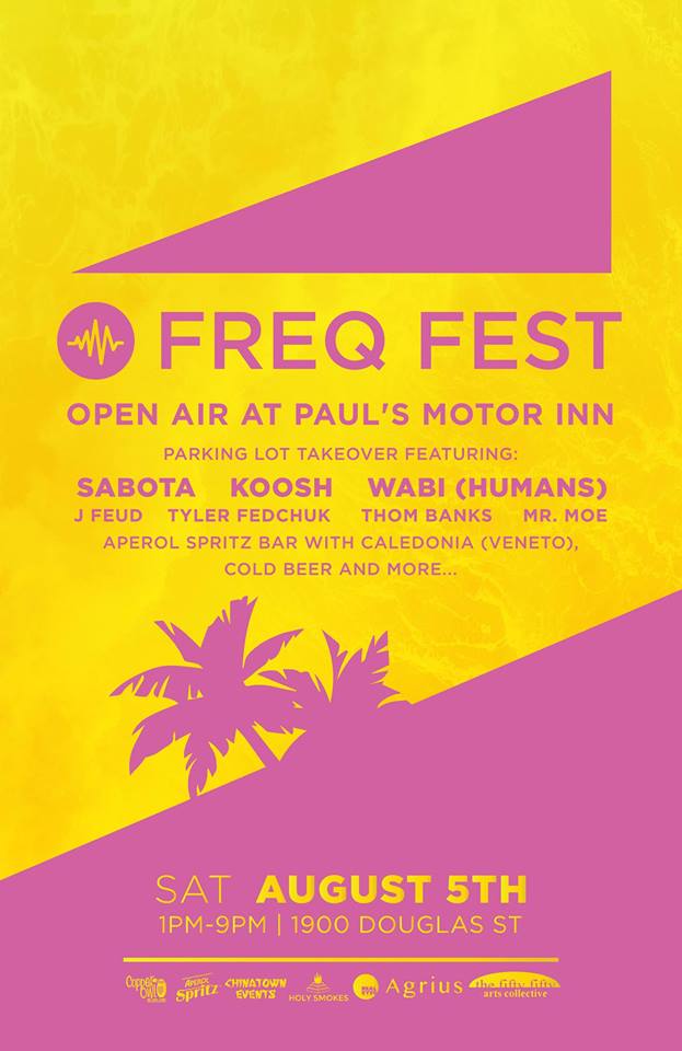 Freq Fest: Open Air at Paul's Motor Inn Sabota, Wabi, KOOSH, Thom Banks, MR MOE THE DJ, Tyler Fedchuk, J Feud