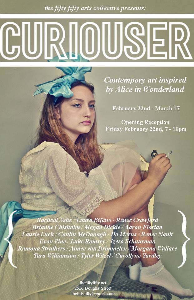 The opening night of Curiouser will see the Fifty Fifty gallery space transformed into a miniature Wonderland with a tea party style reception. All works will be available for sale and accompanied by limited edition prints.