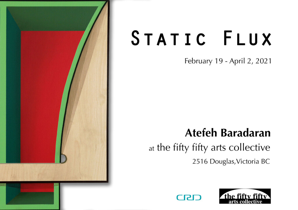 Static Flux is a collection of paintings from an ongoing body of work in which, using minimal three-dimensional compositions, I explore the tensions between foreground vs. background, flat vs. three‐dimensional and inside vs. outside the frame. In these paintings, I aim to activate an interplay between the dimensionally painted image, the flat wooden substrate and the inherent frame enclosing them. The illusion of depth created by the compositions sits in confrontation with the flatness of the exposed substrate and the frame becomes the boundary between the two. The result sometimes lends itself to compositions that appear to be caught in motion against their frame or that exist on a different plane.