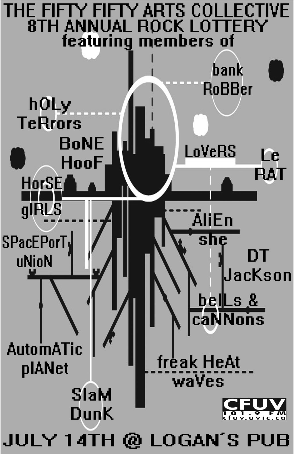 << back to archives 50/50 presents the Annual Rock Lottery!!!! Sat. July 14th 2012 @ Logan's Pub (No Minors) 9pm - 12:45 doors at 8pmPresented by: the fifty fifty arts collective