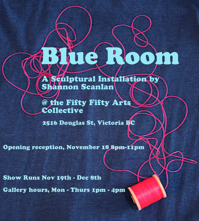 "Shannon Scanlan’s The Blue Room, a sculptural installation at the 50/50 arts collective is not only about the implications of the colour blue. Nor is it only a vacancy, a basic dullish cerulean blue room that we enter. The gallery anteroom or main space becomes the preface to a story, until we chose to cross to the other side. Because Shannon challenges us, creates a narrative with a path to follow, a journey to undertake, a discovery to make.