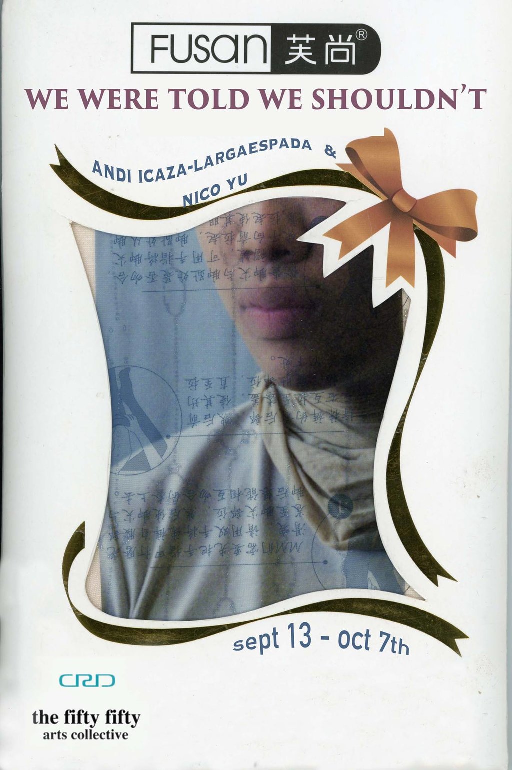 i-y (pronounced ‘ew’), conformed of andi icaza-largaespada and nico yu, collaborate to answer shared questions about gender and ethnicity: they work to see how it looks to dis-identify from these categories. previous work includes performance, printed matter, illustration, photography and soft sculpture. they began collaborating during their time in simon fraser university’s bfa in visual art, and now sustain a friendship in the name of fun/art. their conversations incorporate other inter-personal dialogues with mutual friends and collaborators; logan kenler and emily marston practices are intertwined with i-y’s ‘we were told we shouldn’t’ and as such have been included in the exhibition.