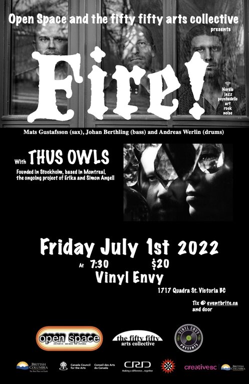 Fire! ..... the Nordic experimental supergroup formed in 2009 by the core trio of Mats Gustafsson (sax), Johan Berthling (bass guitar) and Andreas Werlin (drums) who joined together to develop a fresh approach to improvised music drawing on influences from free jazz, psychedelic rock, and noise. First time in western Canada.