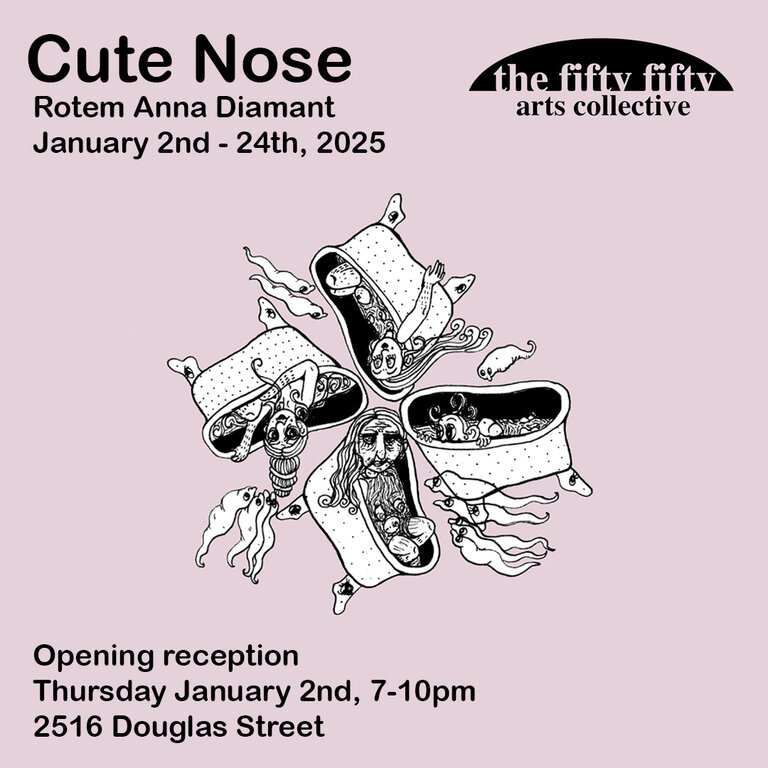 For the past three years, Ro has self-published a series of comics called Cute Nose. This exhibition features original comic art and clay miniatures made in tandem for this series. Cute Nose Issues 1-3 feature experimental comics that explore mental illness, gender identity, and the artist’s own Jewish identity using themes of cuteness, play, and the physicality of the body.