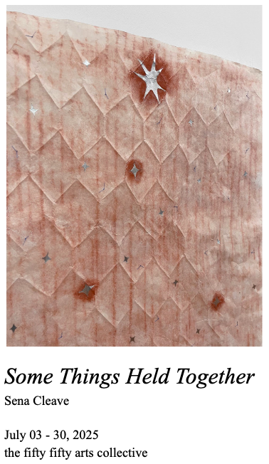 Sena Cleave is an artist working in sculpture and language. Using found and readily available materials, they draw on personal history and cultural knowledge to explore alternative methods of support and sustenance. Cleave lives in the unceded territories of the xʷməθkʷəy̓əm, Sḵwx̱wú7mesh, and səlilwətaɬ Nations. They hold a BFA from Simon Fraser University. Recent exhibitions include Centre A, Seymour Art Gallery, Mónica Reyes Gallery, and Audain Gallery. Their writing has appeared in Contemporary Art Gallery's Timelines, The Only Animal Theatre's Slow Calendar, and various self-published projects. From 2021 to 2023, they curated DIY exhibitions in galleries, a lobby, and their living room.